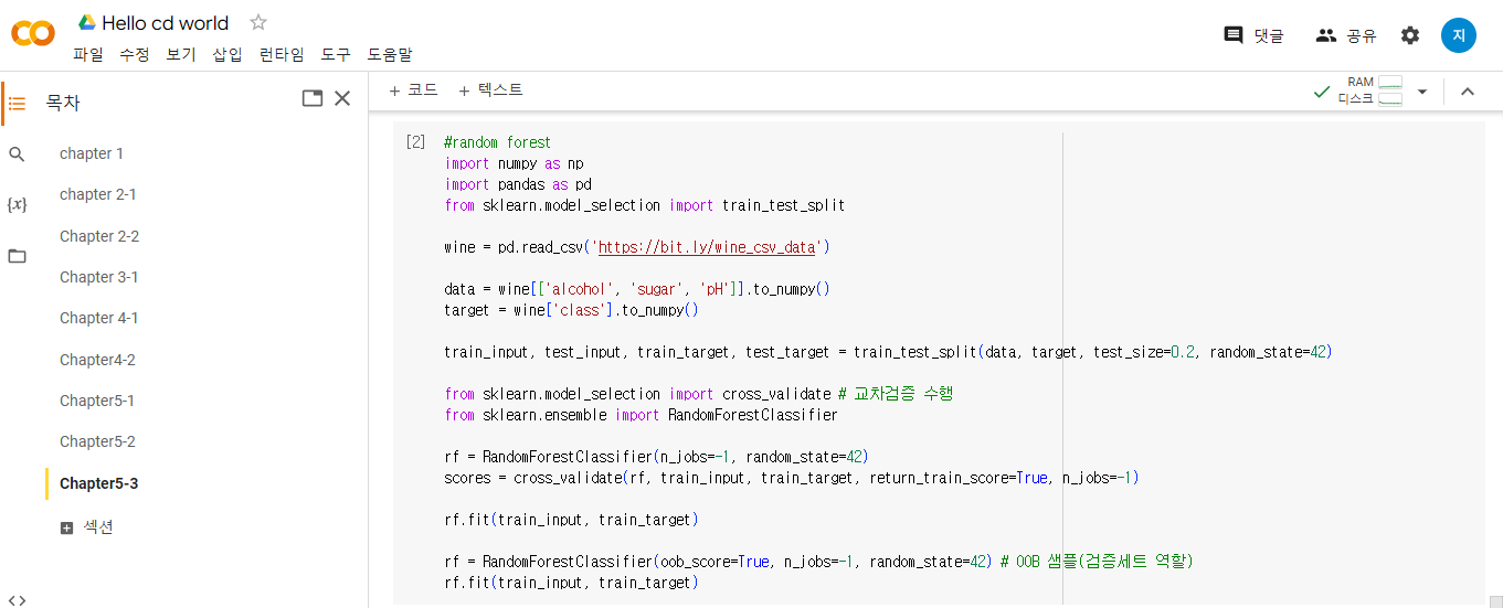 이번 chapter5는 결정트리 그리고 트리의 앙상블에 대한 주제로 진행되었다.