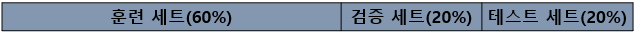 이전에 과대적합과 과소적합을 알아볼 때 테스트 세트를 항상 사용하였다. 하지만 훈련 세트의 일부분을 가져와 '검증 세트'를 만들게 되면 테스트 세트를 사용하지 않고 과대적합과 과소적합을 알아볼 수 있다.